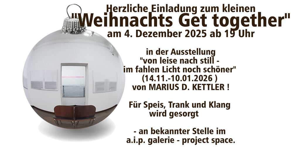 EXHIBITION at the a.i.p.galerie artists in progress / project space Friendly reminder about the little “Christmas get-together” Warm invitation to the live performance of “The Unfamiliarnaires” with vocals, balaphon, drums, and flute... and the sound of the sea from the little mermaid.